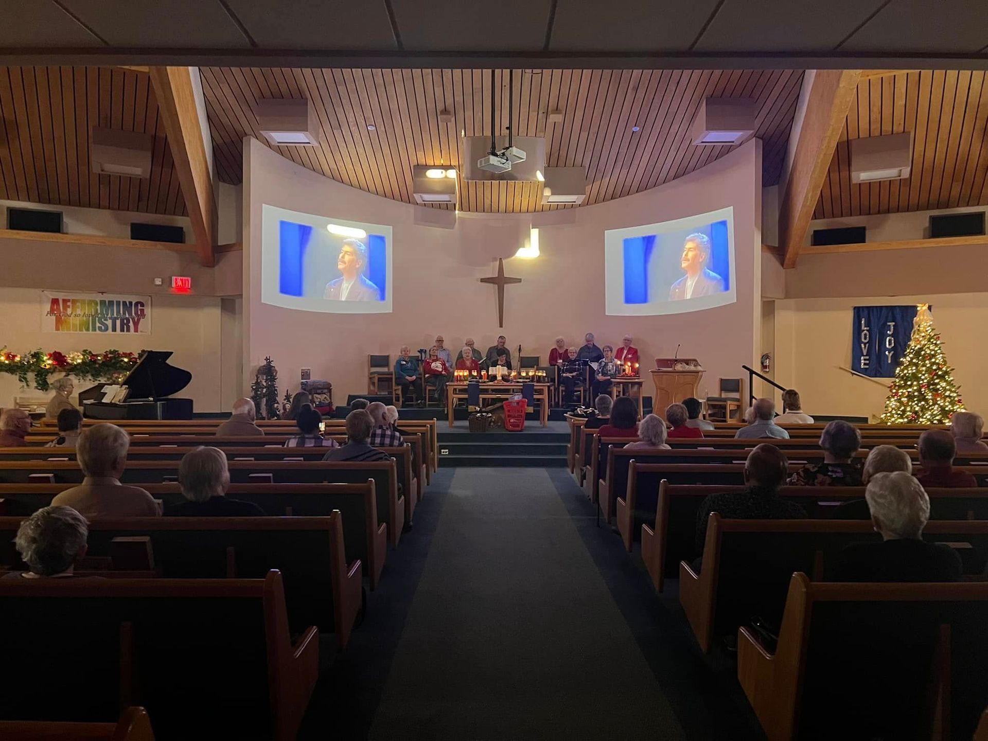 - A multi-media presentation: the order of service, prayers, scripture readings, and hymns are digitally projected on two large screens.